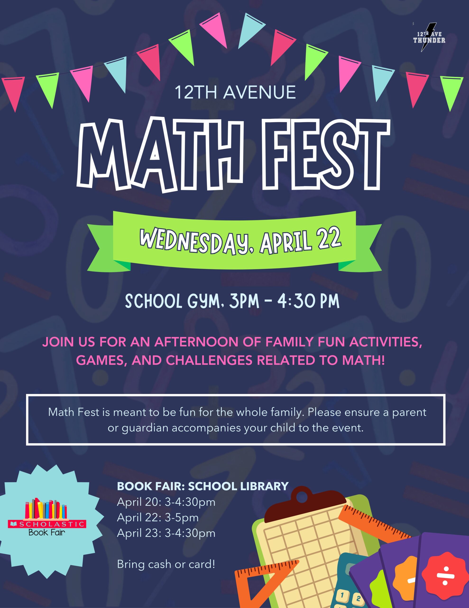 We are excited to invite our school community to our School Math Festival on Wednesday, April 22, from 3:00-4:30 p.m., to join us for an engaging and fun-filled afternoon of hands-on math activities. Students need to be accompanied by adult. Please see the flyer for full details.